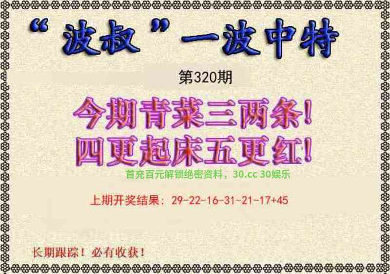 | 325期:【绝杀三肖】【虎兔猪】开:發00准 |