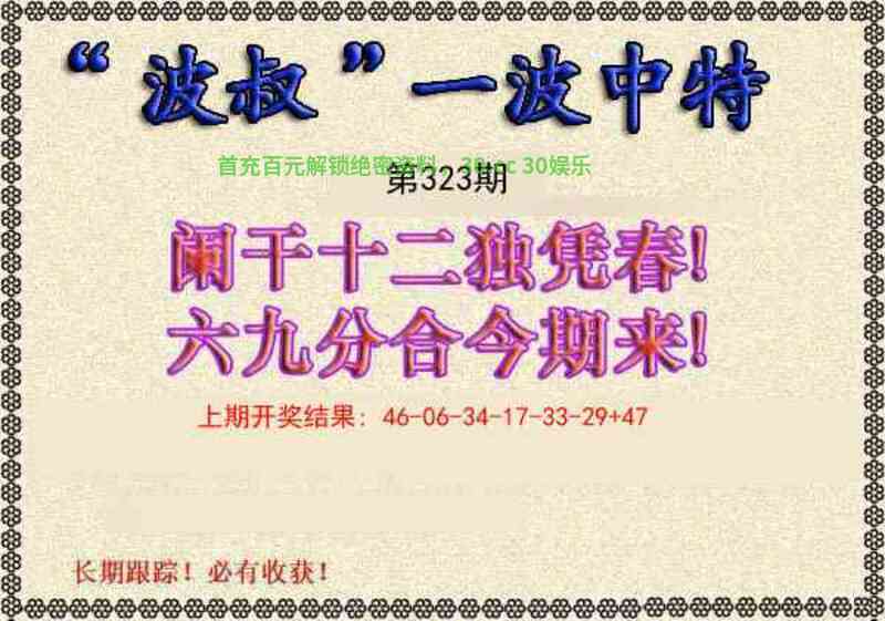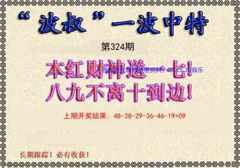 | 323期【澳彩36码】中特=开:鸡09准 |